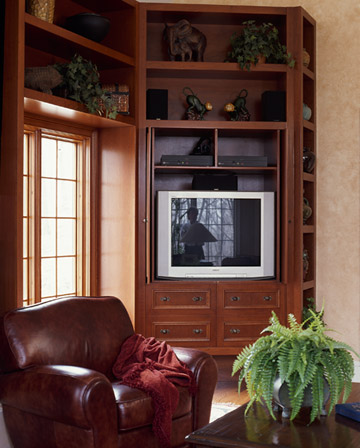 A second close-up shows how the doors of the cabinet slide back into the unit to display the TV that was hidden from view.