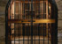 Custom iron doors, set into a stone façade, stand in front of a set of