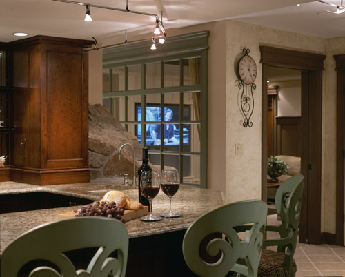 Another view of the window wall shows the view from the bar. This allows those sitting at the bar the enjoyment of the video screen as well.