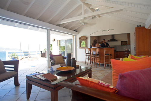 This villa was designed to be open, airy, comfortable, and exciting. The open wall of the Salon, provides airflow as well as a beautiful view of the ocean.